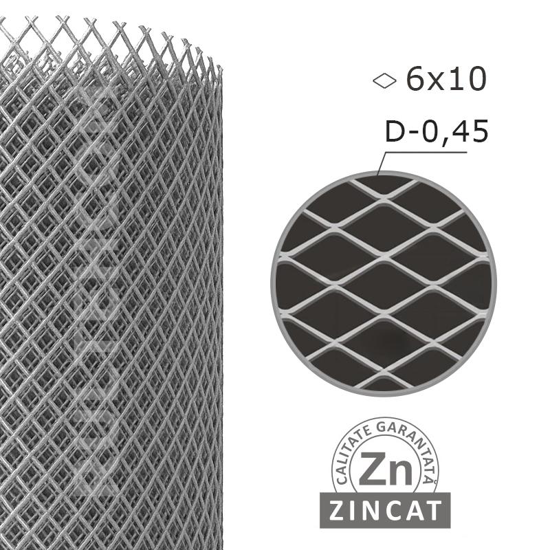 Plasa expandata zincata 6х10 mm D-0,45 mm H-1,0 m L-10 m