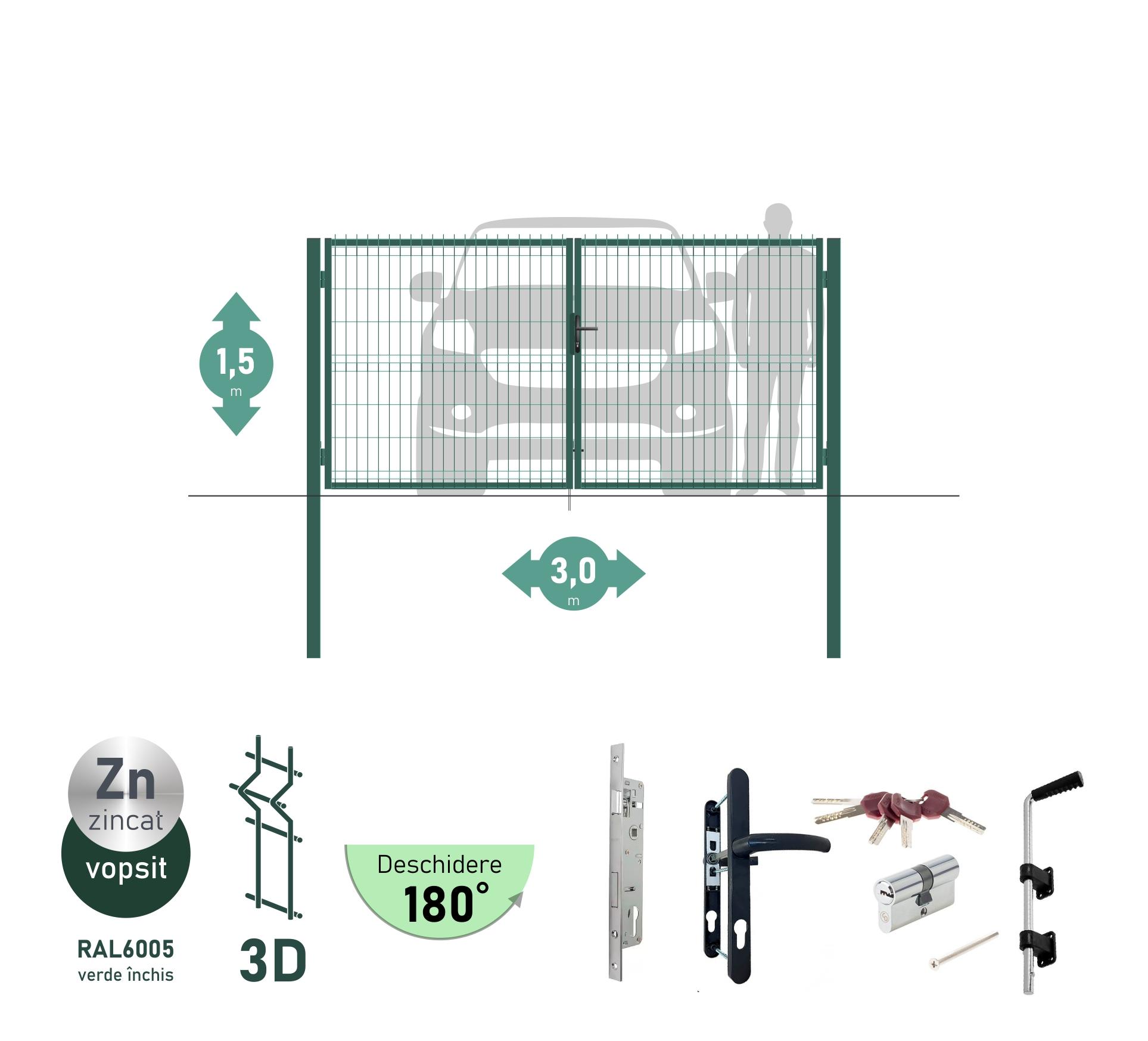Poarta auto batanta OPTIMA 3D H-1,5m L-3,0m (D100) RAL6005