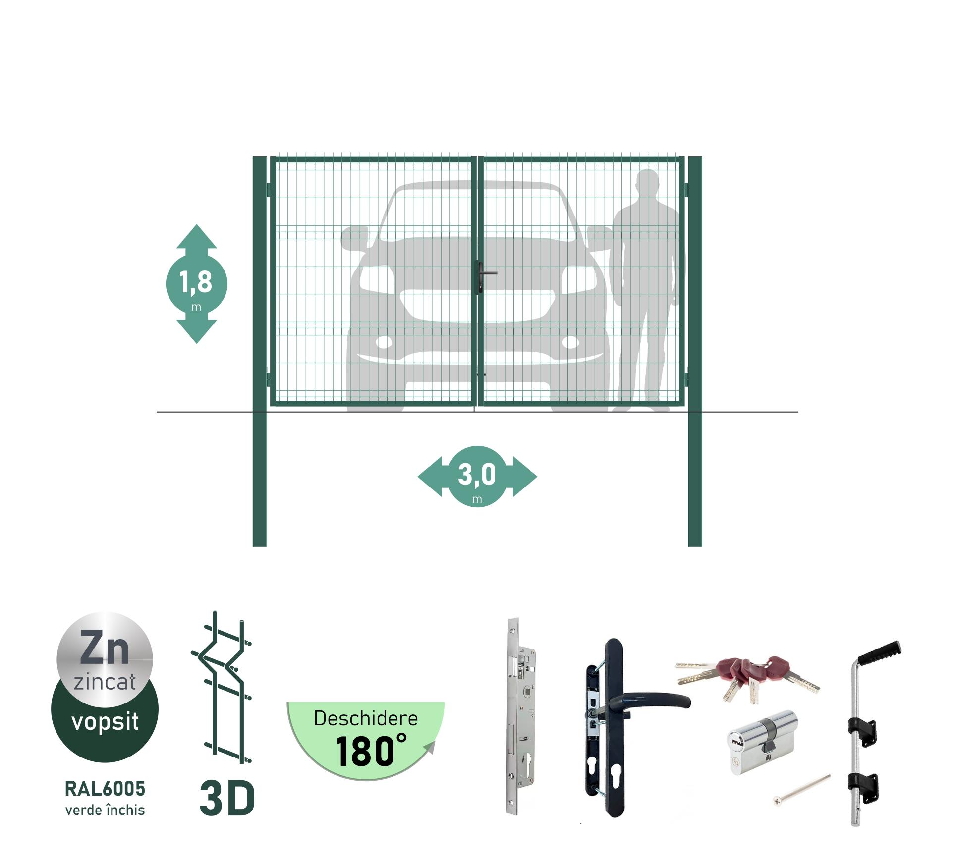 Poarta auto batanta OPTIMA 3D H-1,8m L-3,0m (D100) RAL6005
