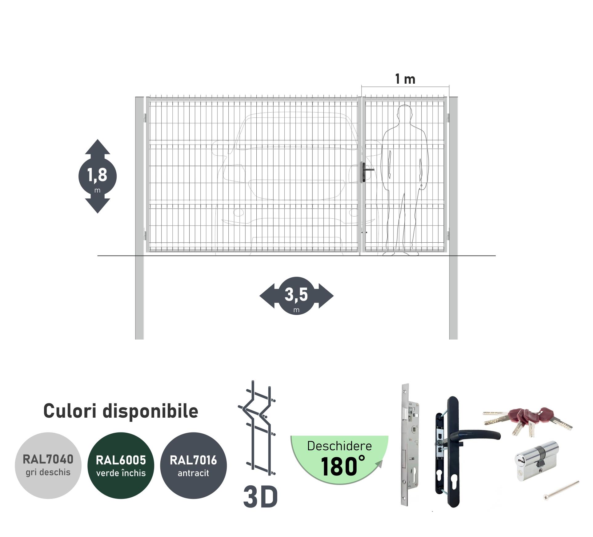 Poarta auto batanta OPTIMA 3D H-1,8m L-3,5m (H100) RAL7040