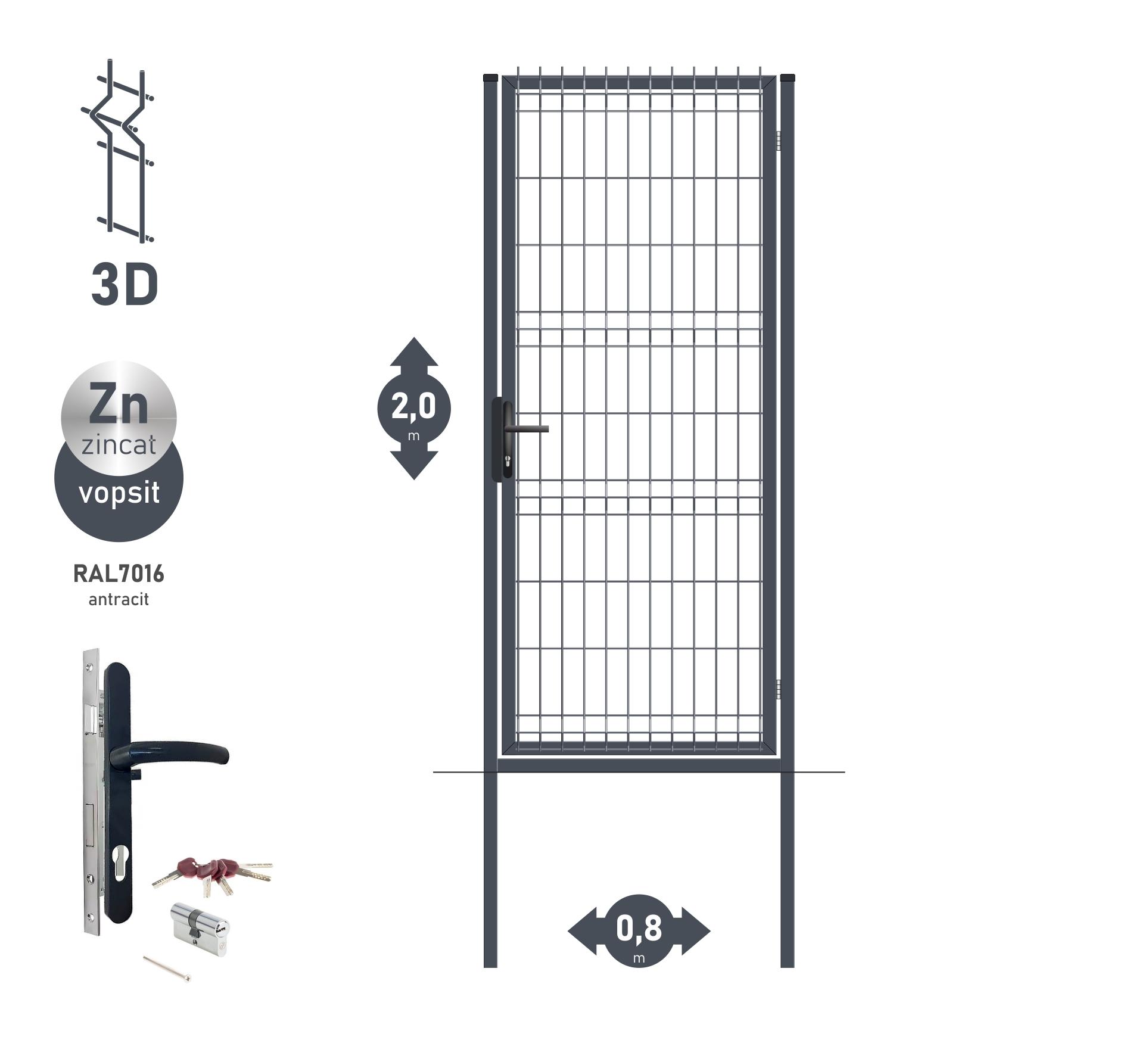 Poarta pietonala OPTIMA 3D H-2,0m L-0,8m RAL7016