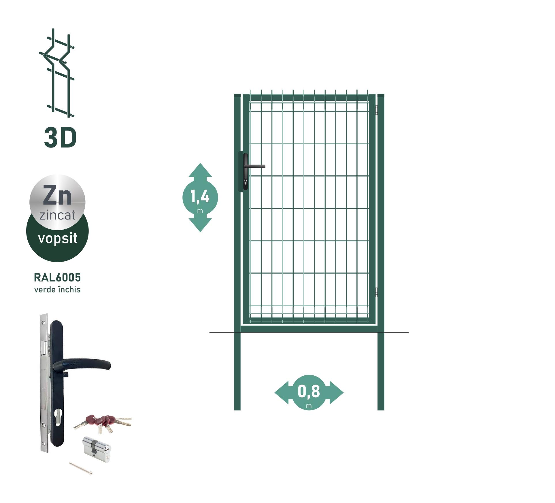 Poarta pietonala OPTIMA 3D H-1,4m L-0,8m RAL6005