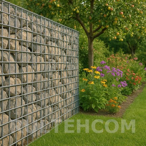 Сетка идеально подходит для изготовления габионов и различных ограждающих конструкций. Благодаря формату «в картах» (листами), она значительно упрощает и ускоряет процесс сборки — панели легко соединяются между собой без необходимости дополнительной резки или подгонки.