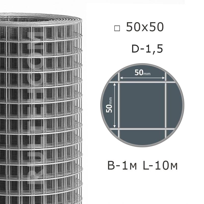 Сетка сварная оцинкованная 50х50 D-1,5 мм B-1 м L-10 м
