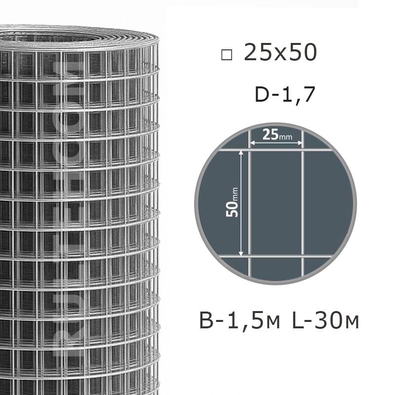 Сетка сварная оцинкованная 25х50 D-1,7 мм B-1,5 м L-30 м