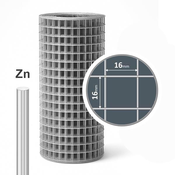 Сетка сварная оцинкованная 16х16 D-1,3 мм B-1 м L-10 мАртикул: 12004 Общие характеристики: