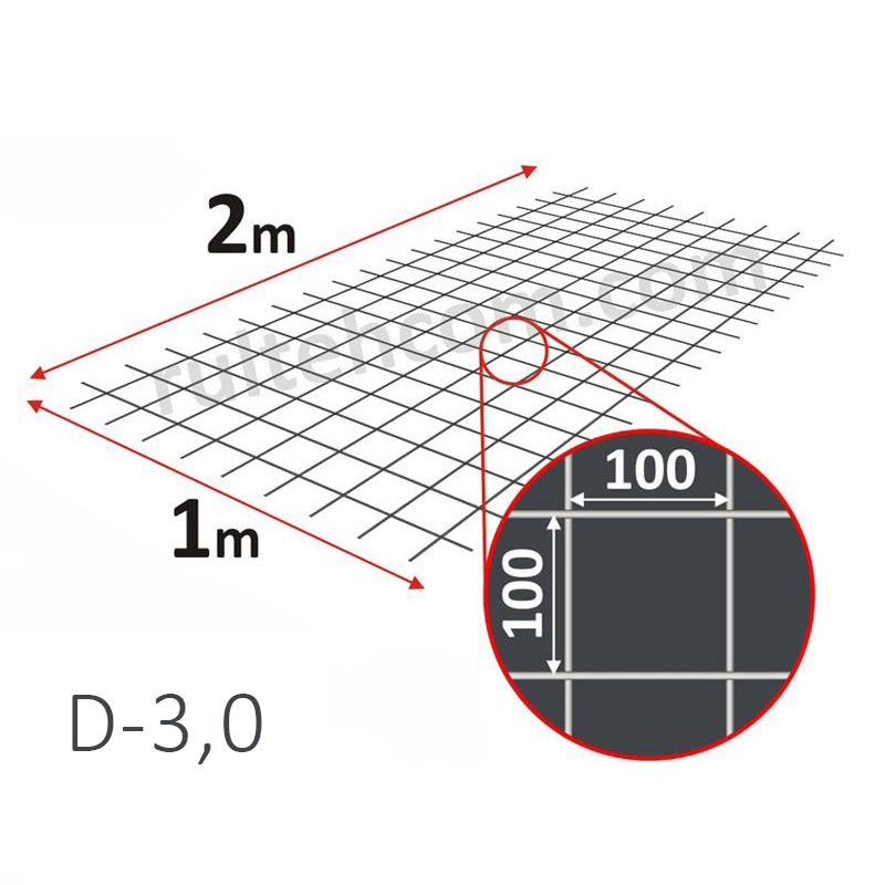 Сетка сварная ВР-1 для армирования 100х100 D-3,0мм 1х2м