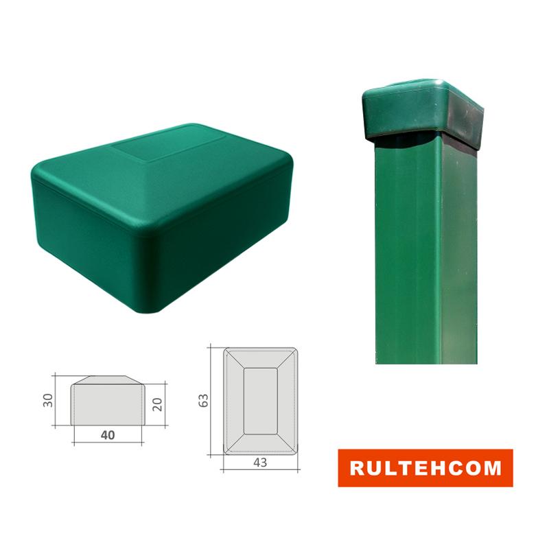 Колпак наружный пластиковый для столба и трубы 60x40 мм зеленый