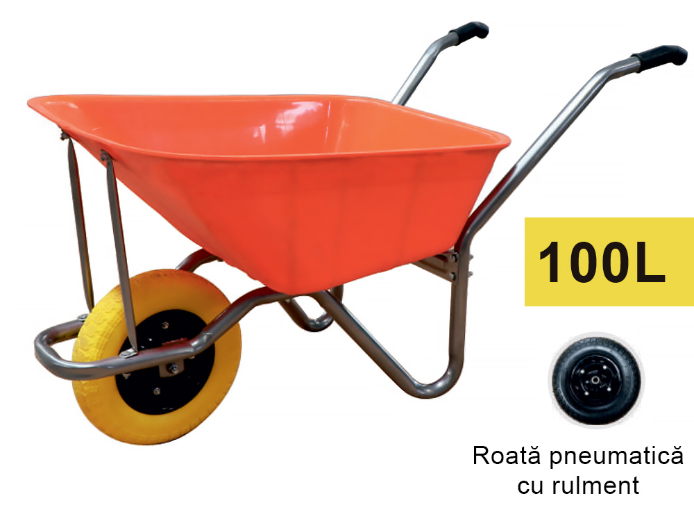 Тачка 100L (пластик) с пневматическим колесом на подшипнике