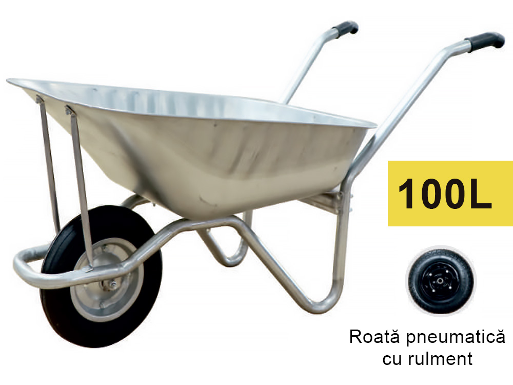 Тачка 100L (металл) с пневматическим колесом на подшипнике
