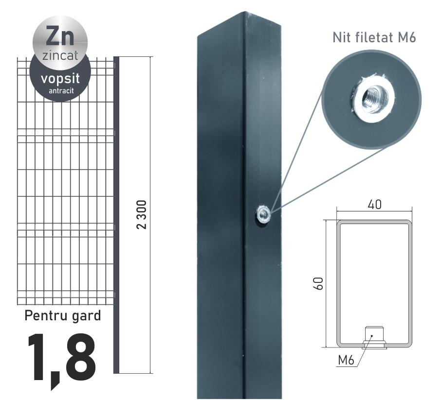 Столб для панелей еврозабора высотой 1,8 м.